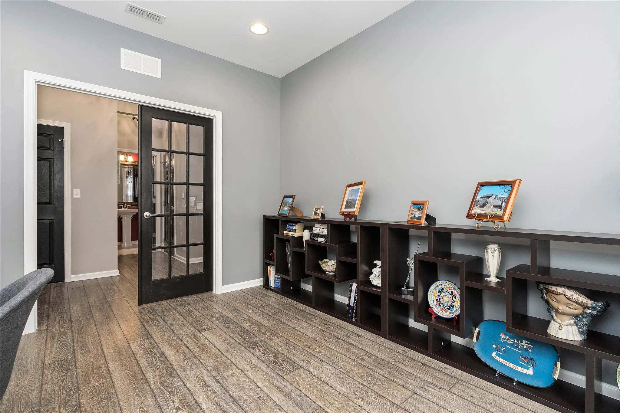 Welcome to this luxury detached home from K Hovnanian Four Seasons at Monroe, a gated community. This 2 bedroom 2.5 bath 2 car garage contemporary ranch style home has 9 ft ceilings, a huge great room with gas fireplace, and a gourmet kitchen and dining area. The gas kitchen has quartz countertops, stainless steel appliances, custom cabinetry, a custom walk-in pantry, and a spacious island with bar seating for up to 5. Attractive built-ins with glass-fronted upper cabinets and quartz countertops flank the fireplace. Floor-to-ceiling sliding glass doors overlook the private custom paver patio with professional landscaping. Additionally, this home has a large office with a built-in desk and cabinets. The master en suite has an upgraded tray ceiling and comes with remote control for the ceiling fan. The spacious tiled master bath features a large shower and linen closet connecting to a huge walk-in master closet fitted with wrap-around organizers. The second bedroom also features a full en suite bathroom with a tub and shower. The floors are laminate throughout except for the bathrooms (tile), laundry room (tile), and utility closet (vinyl). There is also a tankless water heater. In addition to the paver patio, professional landscaping, garage and closet organizers, and office built-ins, there is a new second bathroom countertop, sink, and upgraded interior and exterior light fixtures. All custom fixtures and ceiling fans are included in the price. This exceptional over 55 community requires only one owner aged 55+, and household members 19+ are welcome. Amenities abound including a pool, gym, recreation room, pickleball, tennis, bocce, and more. The location combines the best of suburban living, golf courses, parks, and close proximity to the NJ turnpike with an hour commute to NYC.
