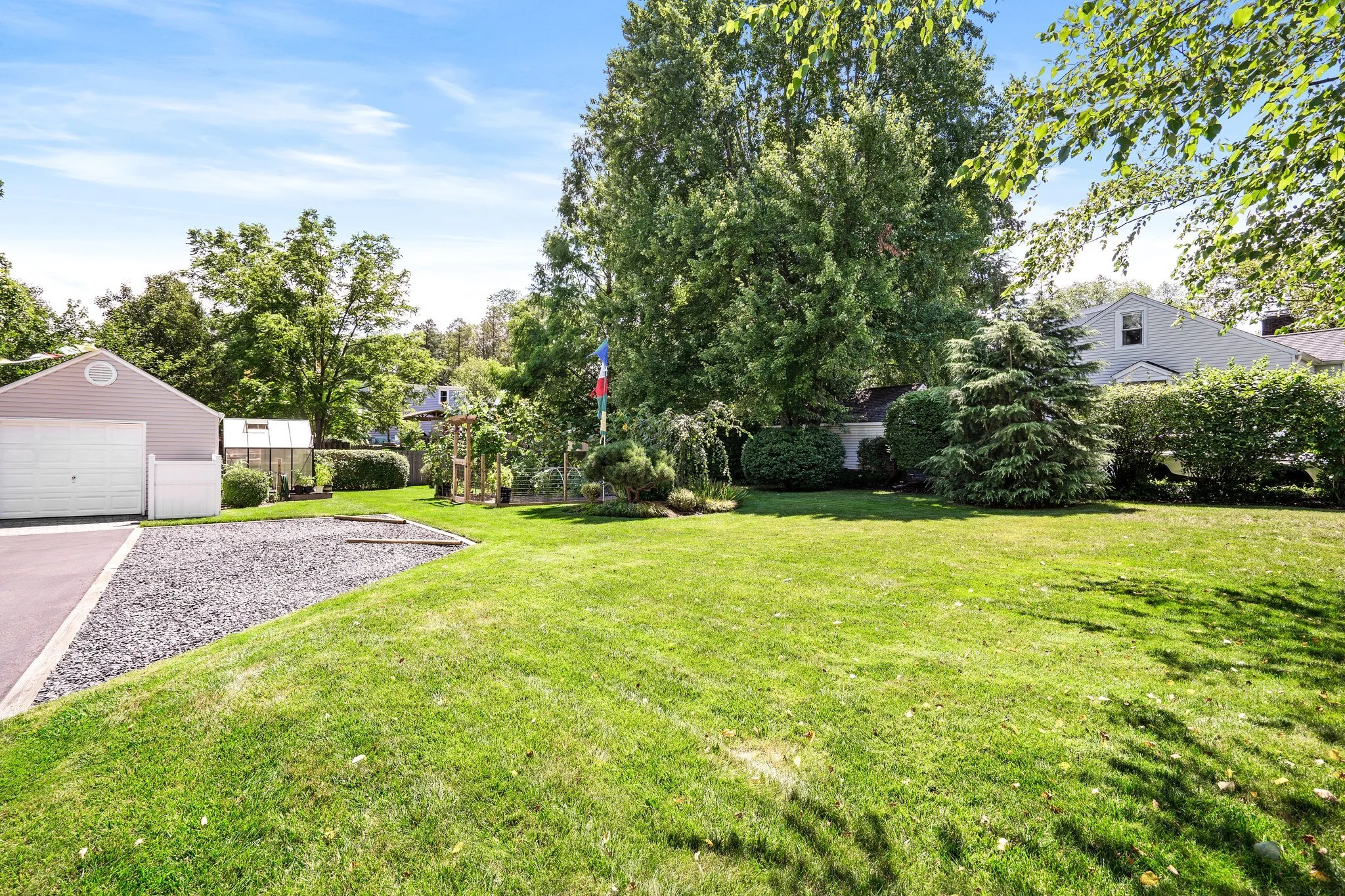 Introducing this beautiful 2 bedroom, 1 full bath cape in Historical Hightstown! Lovely curb appeal with manicured landscaping and a brick walkway welcomes you to this delightful home. The interior of this home is newly painted and tastefully decorated throughout! Light filled living room with hardwood flooring. Spacious attic is newly insulated with a temperature controlled room great for an office or art studio. The kitchen has a new refrigerator, newly painted cabinets with new hardware, and new flooring. Kitchen leads to a dining room / sun room with slate flooring, wainscoting, and views onto the gardens. Laundry room with new washer and dryer. Hot water heater installed in 2022. Roof with new sheathing & shingles (2021), gutters with leaf guards (2019). This 17,420 square ft. property is the perfect oasis to unplug and unwind with blooming landscaped gardens, manicured lawns, and thriving vegetable gardens. Greenhouse with electricity is great for year-round veggie growing. Relax on the back deck and brick patio under a shady maple tree while enjoying time with family and friends or sit around the fire pit at night. One car detached garage with driveway and gravel parking area. Located within walking distance to The Peddie School, Hightstown High School, East Windsor PAL Soccer fields, Downtown Hightstown, Old Hights Brewery, and Peddie Lake where you can enjoy kayaking, fishing and bird watching. Approximately one mile from the NJ turnpike Exit 8, Route 130, 195 and 7 miles from the Princeton Junction train station making this home a commuters dream!